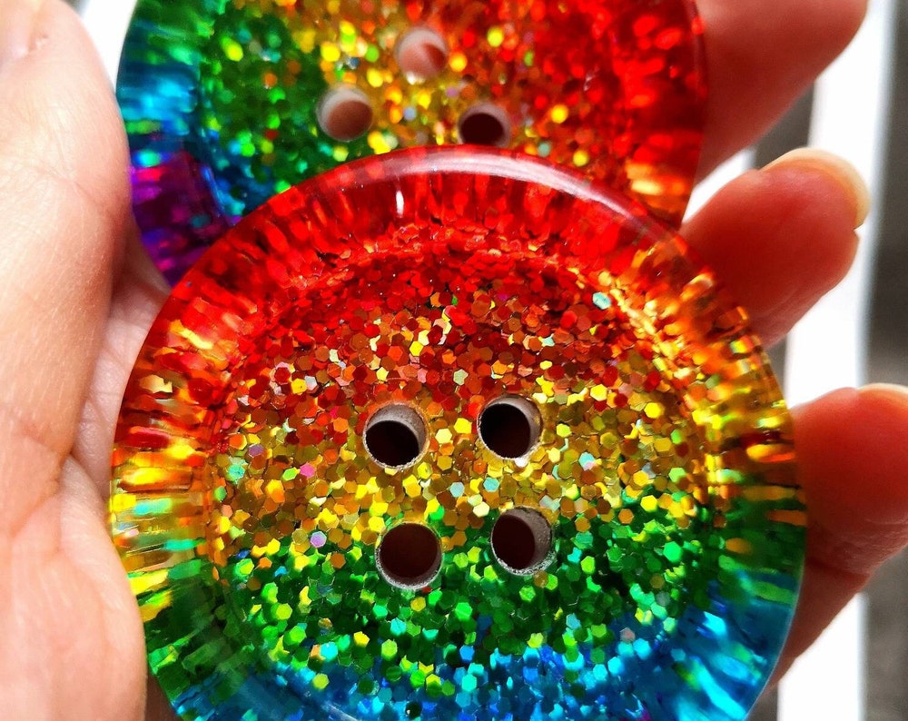Classic Rainbow Stripe Button – Bright Chunky Resin Button Packed with Sparkle