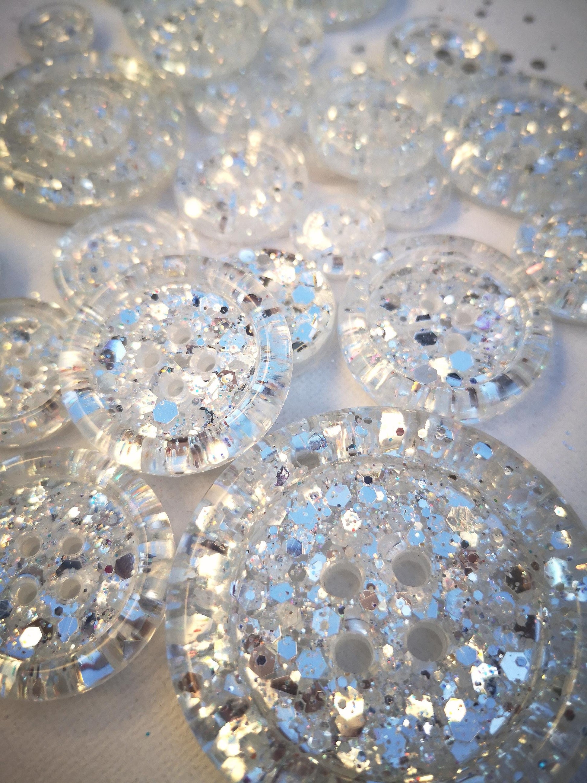 Machine washable at 30°C - though for maximum sparkle, I always recommend a gentle cool handwash. Edges are carefully sanded for safety, and each button is handmade with high-quality glitter and non-toxic resin.