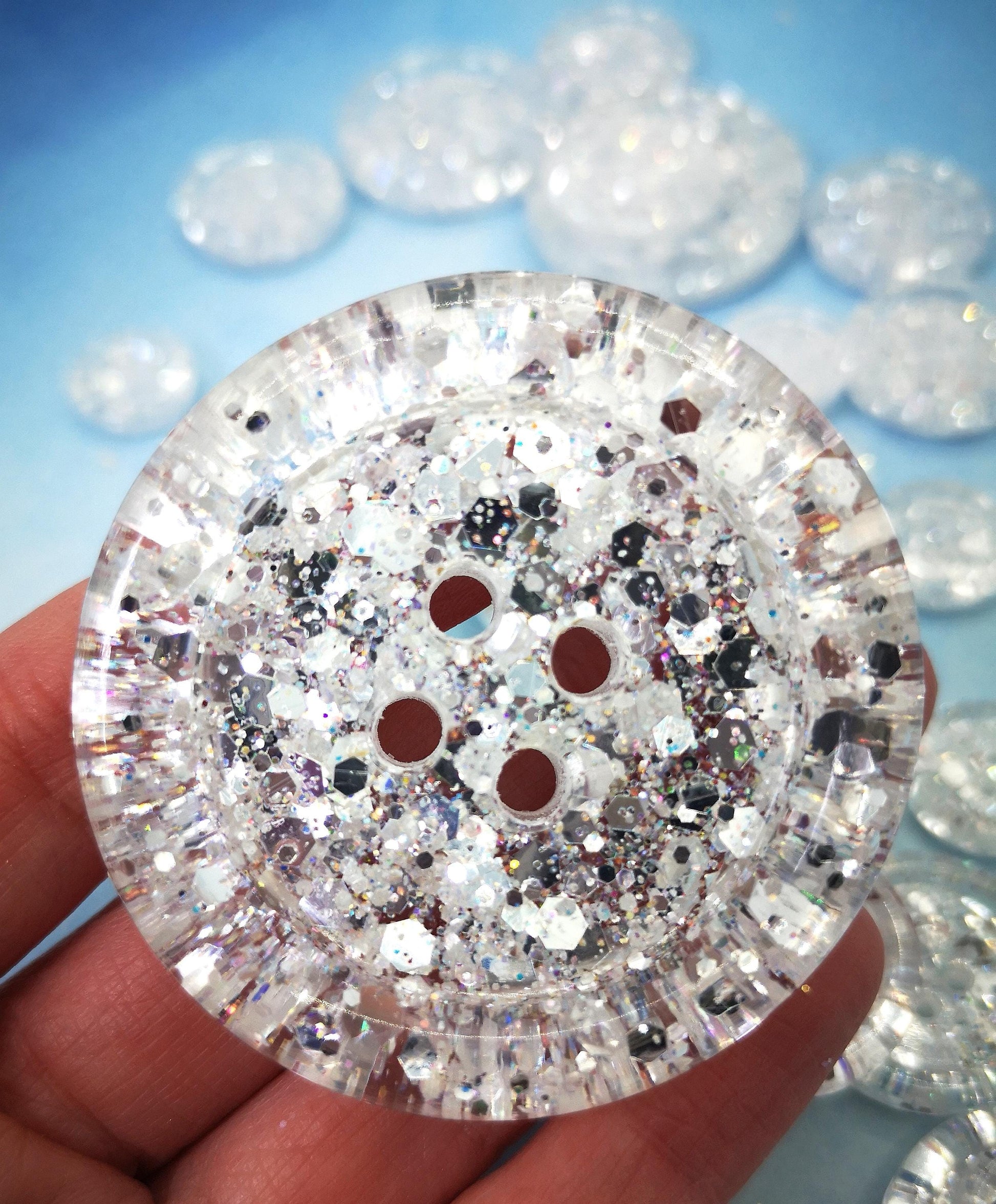 I’m so excited to finally share these wintery twinklies with you! With their mirror-like silver-white shimmer, these buttons are nothing short of breath-taking - possibly the most dazzling sparkle in my entire collection. Think morning frost catching the first light: ethereal, radiant, and utterly mesmerising.