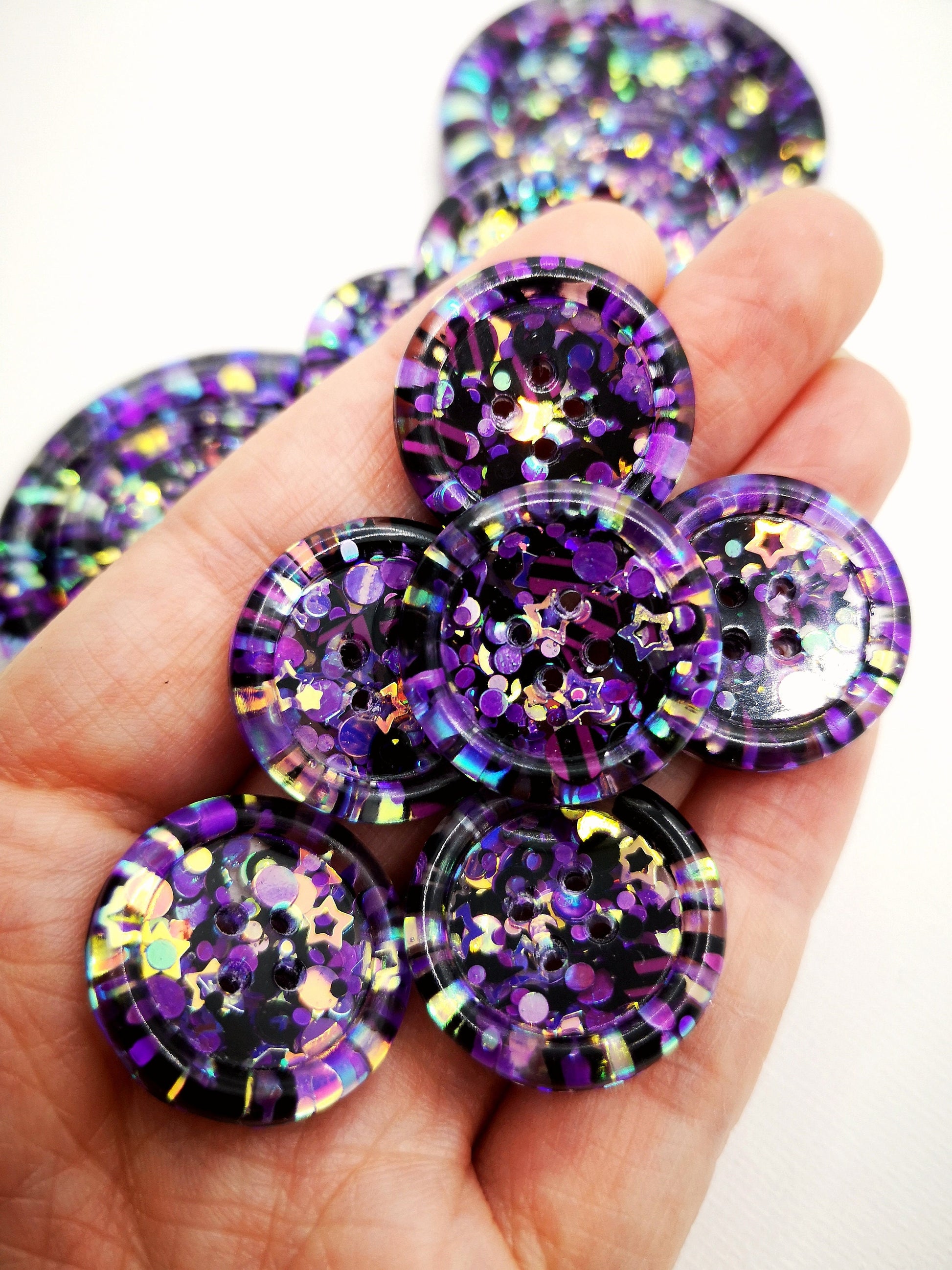 Machine washable at 30°C - though for maximum sparkle, I always recommend a gentle cool handwash. Edges are carefully sanded for safety, and each button is handmade with high-quality glitter and non-toxic resin.